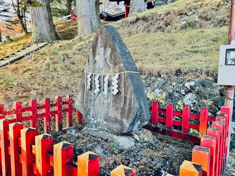 ちなみに、この石と同様の由緒を持つ石が赤い大鳥居の脇に存在する「巫女石(みこいし)」です。